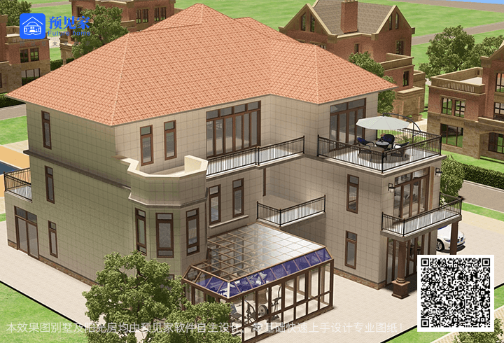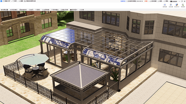 自由繪制陽光房形狀,可以繪制多個陽光房地基,定義不同房頂陽光房自由組合